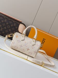 [Dynamic 163c01 Chip] M25591 White Embossed Premium Original [Exclusive Background Photos] This Nano Speedy handbag, infused with a subtle, dreamy color for the new season, effortlessly enhances any look. The classic Monogram Empreinte leather body is accented with hardware, and the spacious interior accommodates a compact wallet and other everyday essentials. The detachable shoulder strap allows for versatile carrying options.